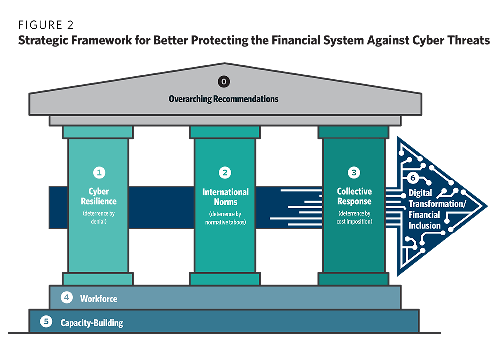 For example, for central bank officials who are already very familiar with ongoing efforts to increase the sector’s resilience, the sections on international norms and collective response will offer new information about how the recommendations focusing on diplomatic initiatives and the national security community can help support their resilience-focused efforts. Similarly, for diplomats focused on advancing international norms, the section on cyber resilience will point to opportunities for implementing these norms. And the challenges with respect to workforce and capacity-building are often neglected but essential to strengthen the system’s weakest links.