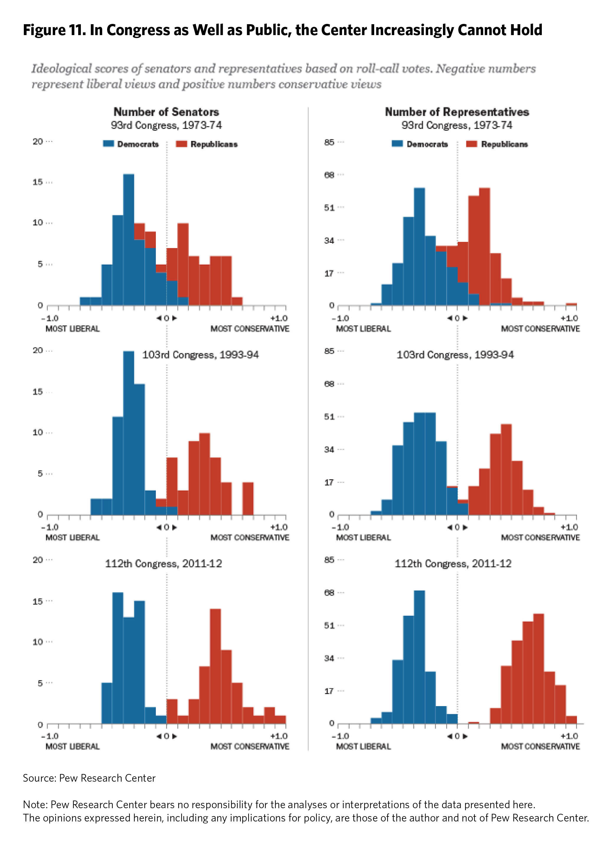 Findings on ordinary Americans’ polarization were disputed. Polarization among the public seemed to depend on what scholars were measuring. Pew Research Center found growing antipathy as well as ideological distance among political activists that was bleeding into regular voters, but it also found that a broad center still held.59