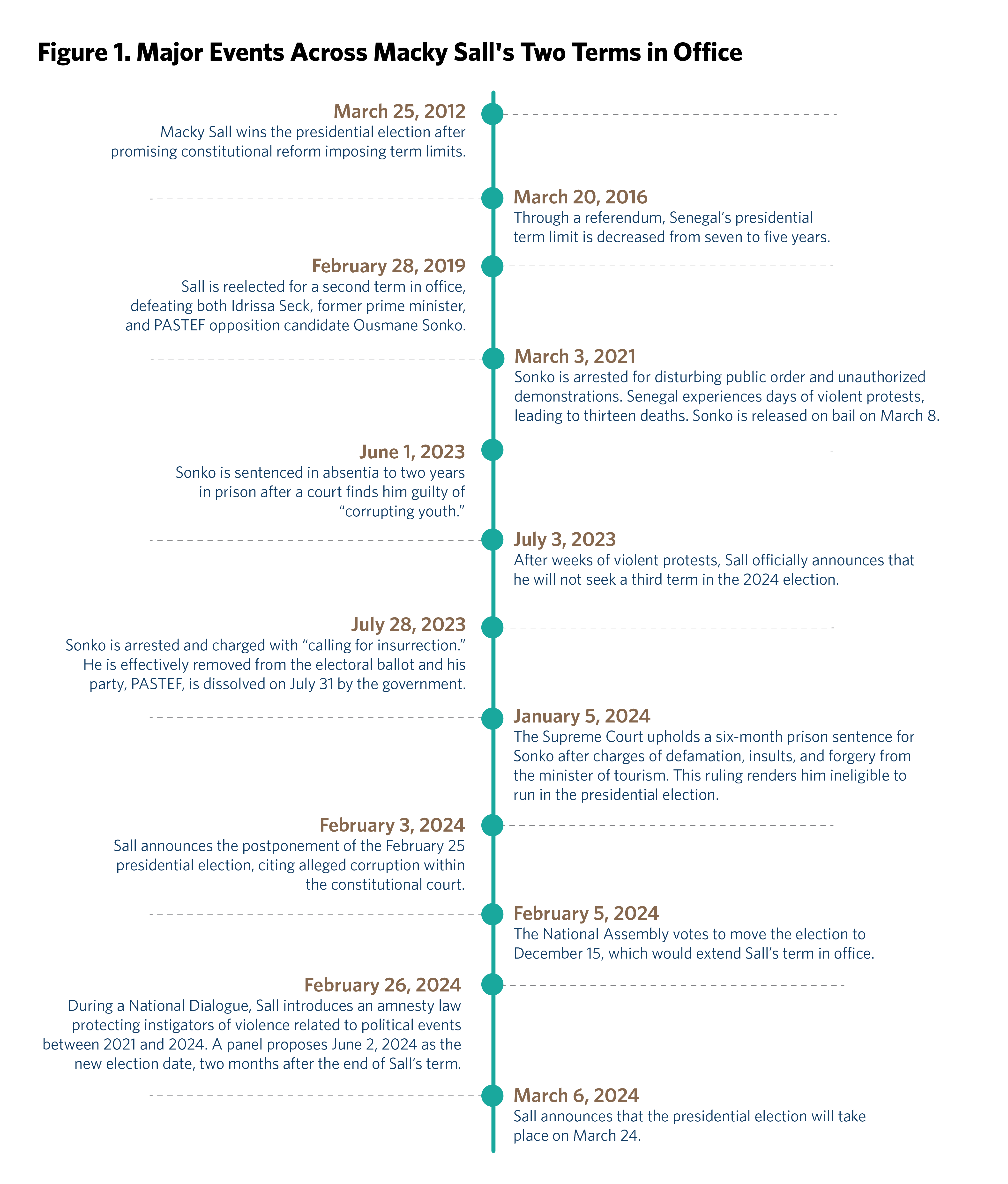 30 Yinka Ibukun and Katarina Hoije, “Senegal’s Sall Tries to Salvage Legacy Amid Constitutional Crisis,” Bloomberg, February 23, 2024, https://www.bloomberg.com/news/articles/2024-02-23/senegal-elections-president-macky-sall-fights-to-save-reputation-amid-turmoil.